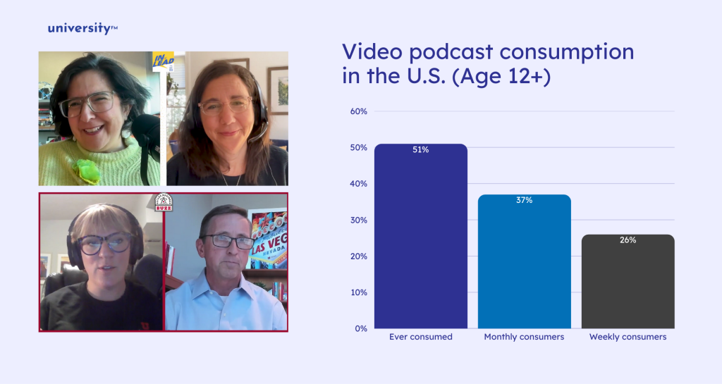 Video podcasts are on the rise. Edison Research’s Podcast Consumer 2025 reports that 37% of U.S. audiences aged 12 and older engage with video podcasts monthly, creating opportunities to: